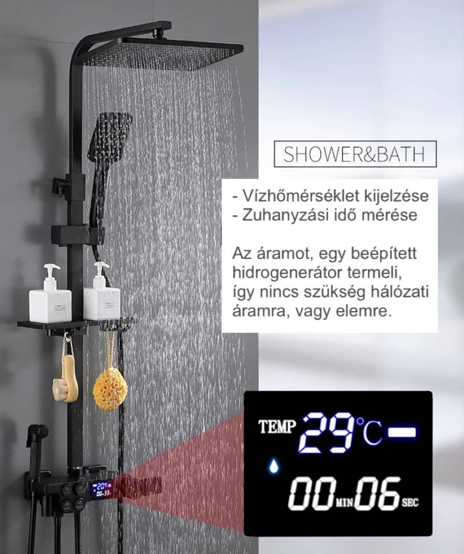 Kijelző típusa: digitális (automatikus be és kikapcsolás a víz áramlása közben)
