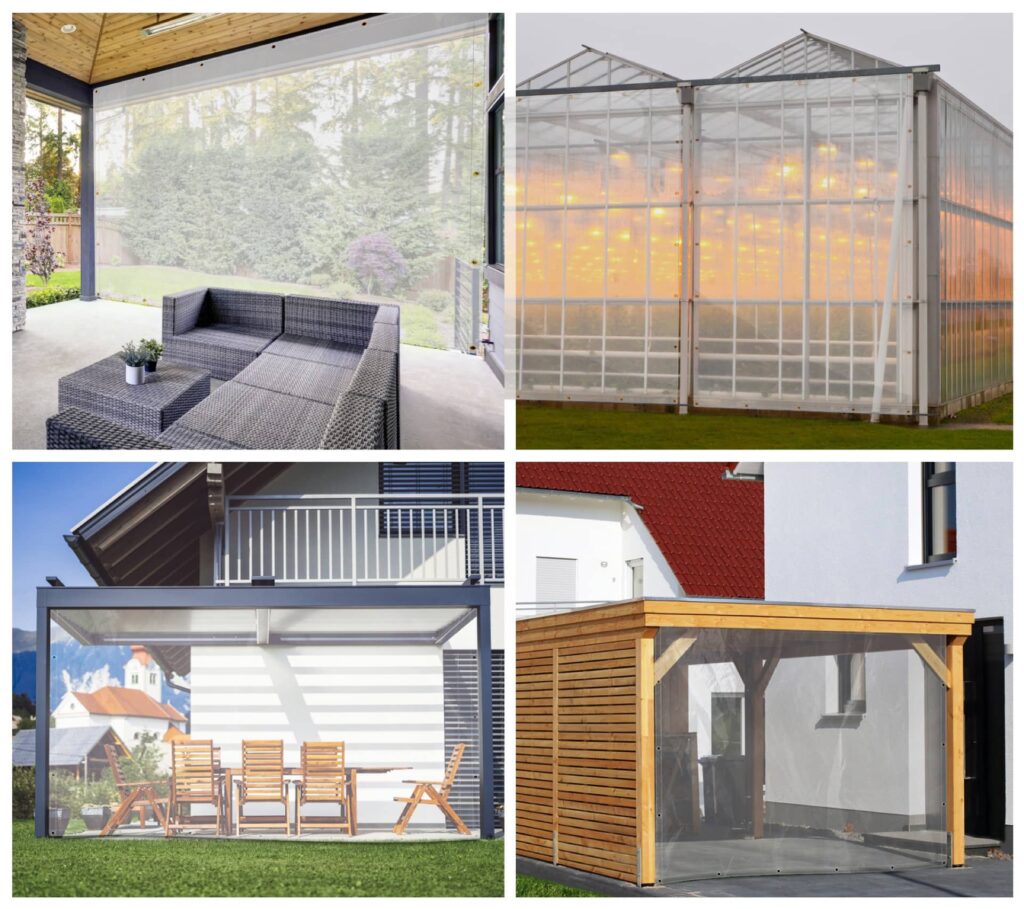Átlátszó PVC vinil ponyva, ami szakadás és kopásálló.