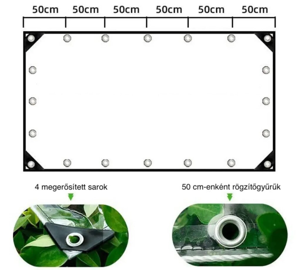 Ponyva súlya: kb. 0,5 kg / négyzetméter