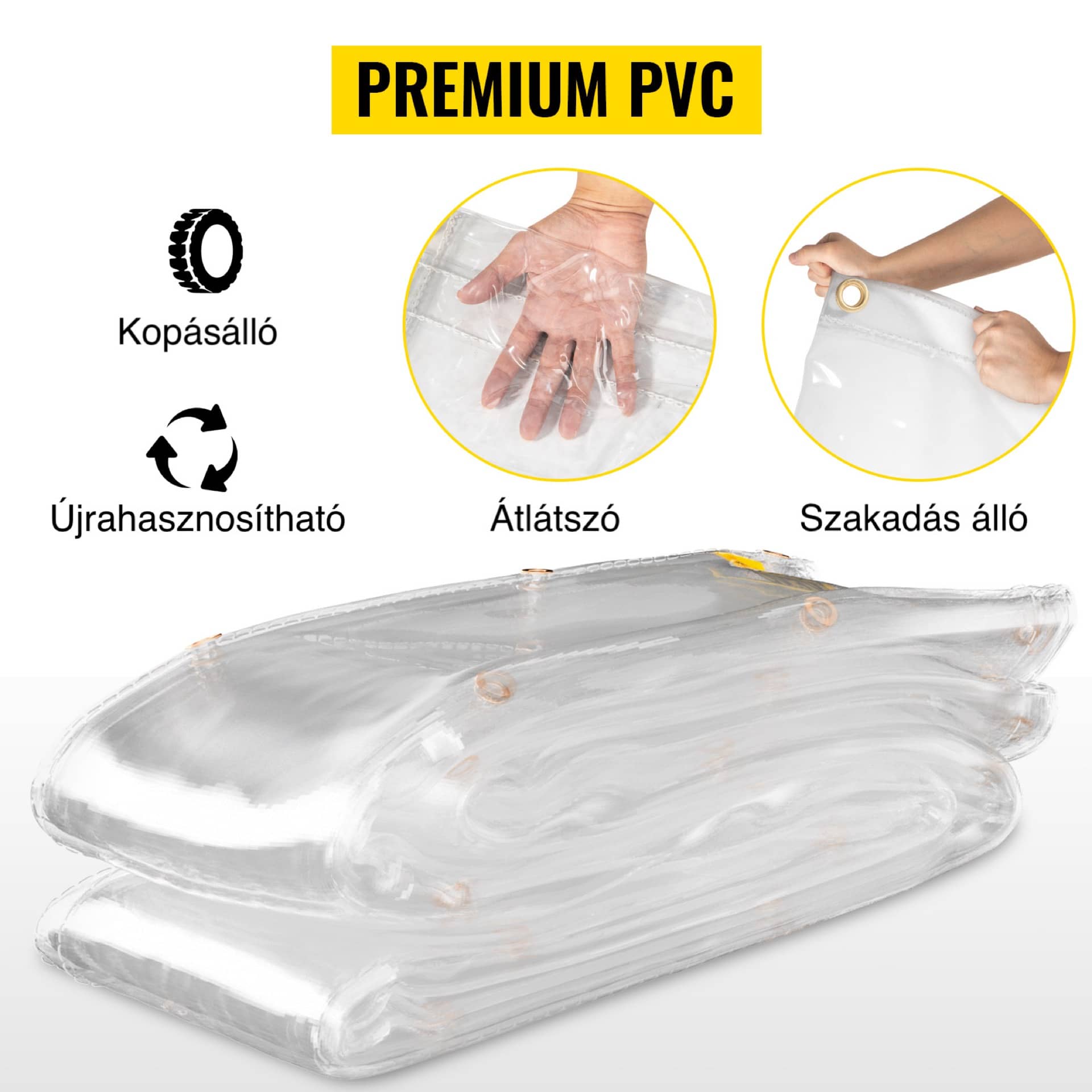 - Átlátszó, víztiszta PVC ponyva