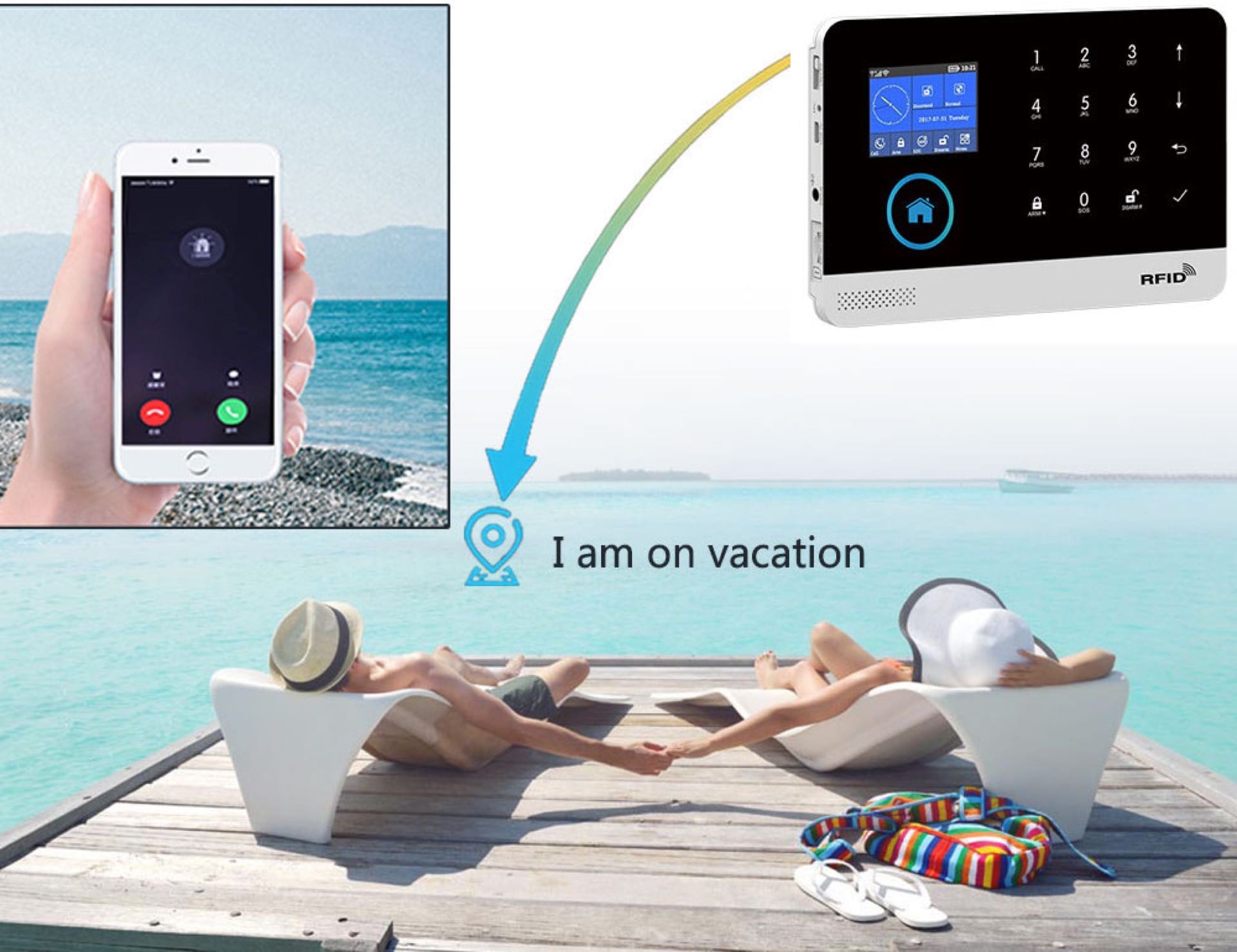 - Tartozék távirányítóval és RFID kulcstartóval
