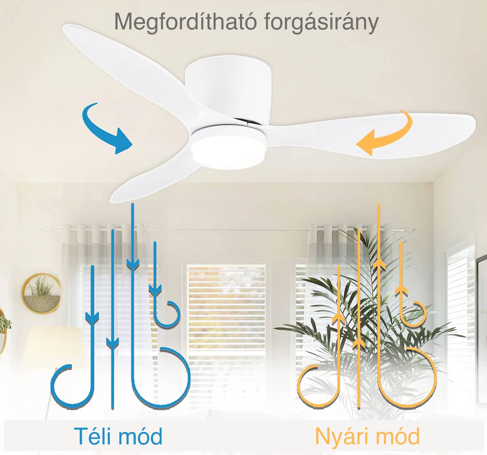 - Egy gombnyomással megfordítható forgásirány (téli - nyári üzemmód)
